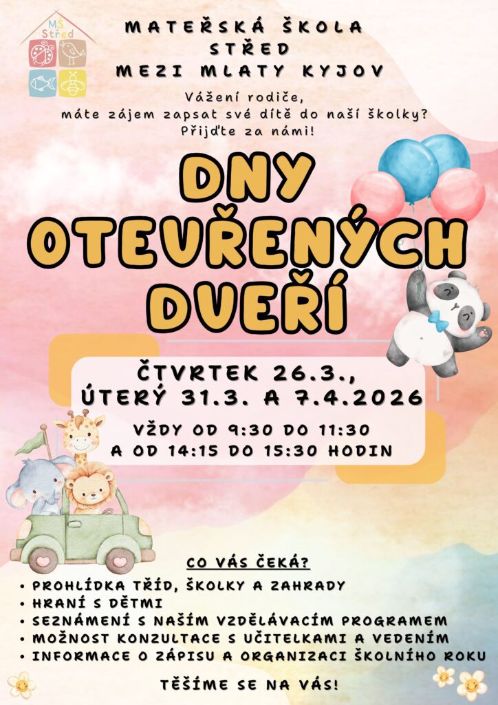Ve čtvrtek 26.3., v úterý 31.3. a 7.4.2026 vždy od 9:30 do 11:30 a od 14:15 do 15:30 hodin.